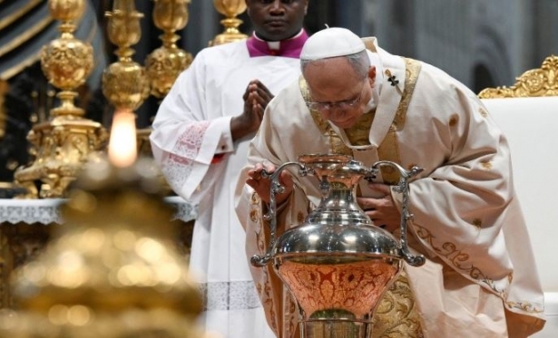 Nesta Quinta-feira Santa o Papa Leão XIV presidiu a Missa do Crisma, também chamada dos Santos Óleos, na Basílica de São Pedro, concelebrada por patriarcas, cardeais, arcebispos, bispos e presbíteros presentes em Roma. É o primeiro ano que Prevost preside a celebração como Bispo de Roma, como ele mesmo lembrou na homilia, a última antes do Tríduo Pascal, com a renovação das promessas sacerdotais e a bênção dos santos óleos que serão usados nas cerimônias sacramentais do Batismo, Crisma e Unção dos Enfermos.